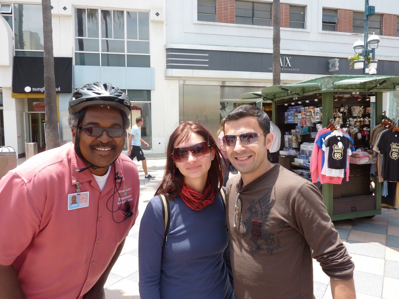Городок, со всех сторон окружённый Лос-Анджелесом, знаком нам по американским фильмам, в которых выступает в роли благополучного и очень богатого места жительства. Это действительно так. Мы прошли по некоторым улицам, в том числе и по знаменитой «Родео Драйв», увидели, как живут те, кто привыкли себе ни в чём не отказывать. Шикарные особняки, оригинальные дизайнерские решения, дорогие автомобили – это всё неотъемлемая часть Беверли-Хиллз. Каждая улица высажена определёнными деревьями, каждый магазин дорогой настолько, что без нескольких тысяч долларов в кармане нет смысла заходить. Модно подстриженные собаки, сумочка, украшенная бриллиантами на витрине – это тут обычное дело.