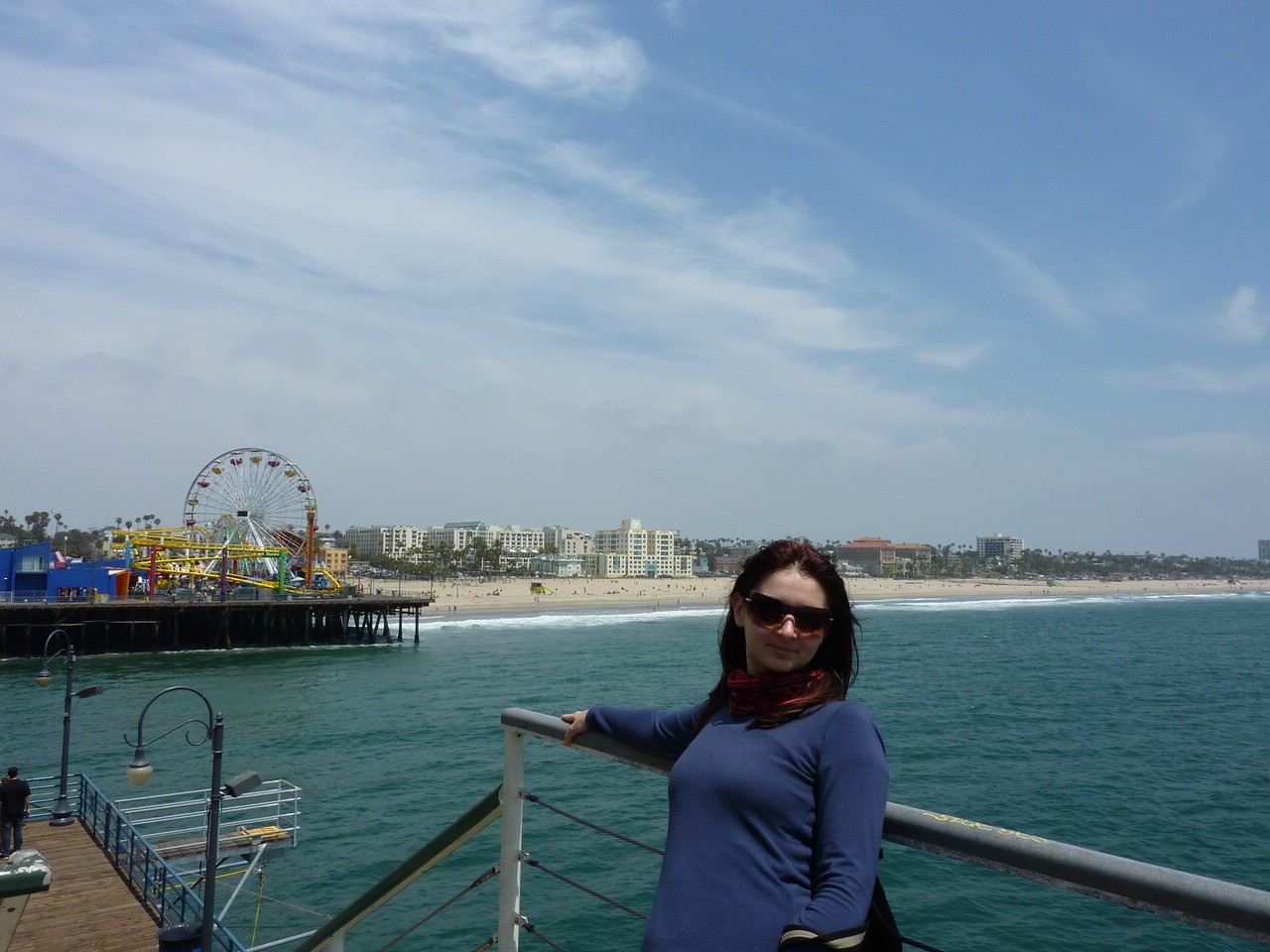 В аэропорту Лос-Анджелеса нас и остальную часть группы встретил гид. Уточню, что тур русскоязычный, и группа набралась довольно большая, человек сорок. В отличие от вашингтонской экскурсии, тут мы оказались единственные израильтяне. Все остальные представляли Америку, Россию, Украину, Германию и Англию. И вот такой «пёстрый» автобус с водителем китайцем повёз нас на нашу первую остановку – город Санта-Моника. Город – это, конечно, по израильским масштабам. А по американским – красивый прибрежный городок по соседству с Лос-Анджелесом. Вся атмосфера просто излучала что-то новое, необычное и в то же время спокойное. Разница после Нью-Йорка, примерно как выйти с дискотеки на свежий воздух уже под утро – такая восстанавливающая силы атмосфера. Люди никуда не торопятся, они сидят в кафе или гуляют по променаду вдоль океана. Кстати, вот и он – на этот раз уже Тихий Океан. Прямо здесь можно прогуляться по пирсу, полному магазинов и аттракционов, полюбоваться на город, пляж и чаек. Что мы с удовольствием и сделали.