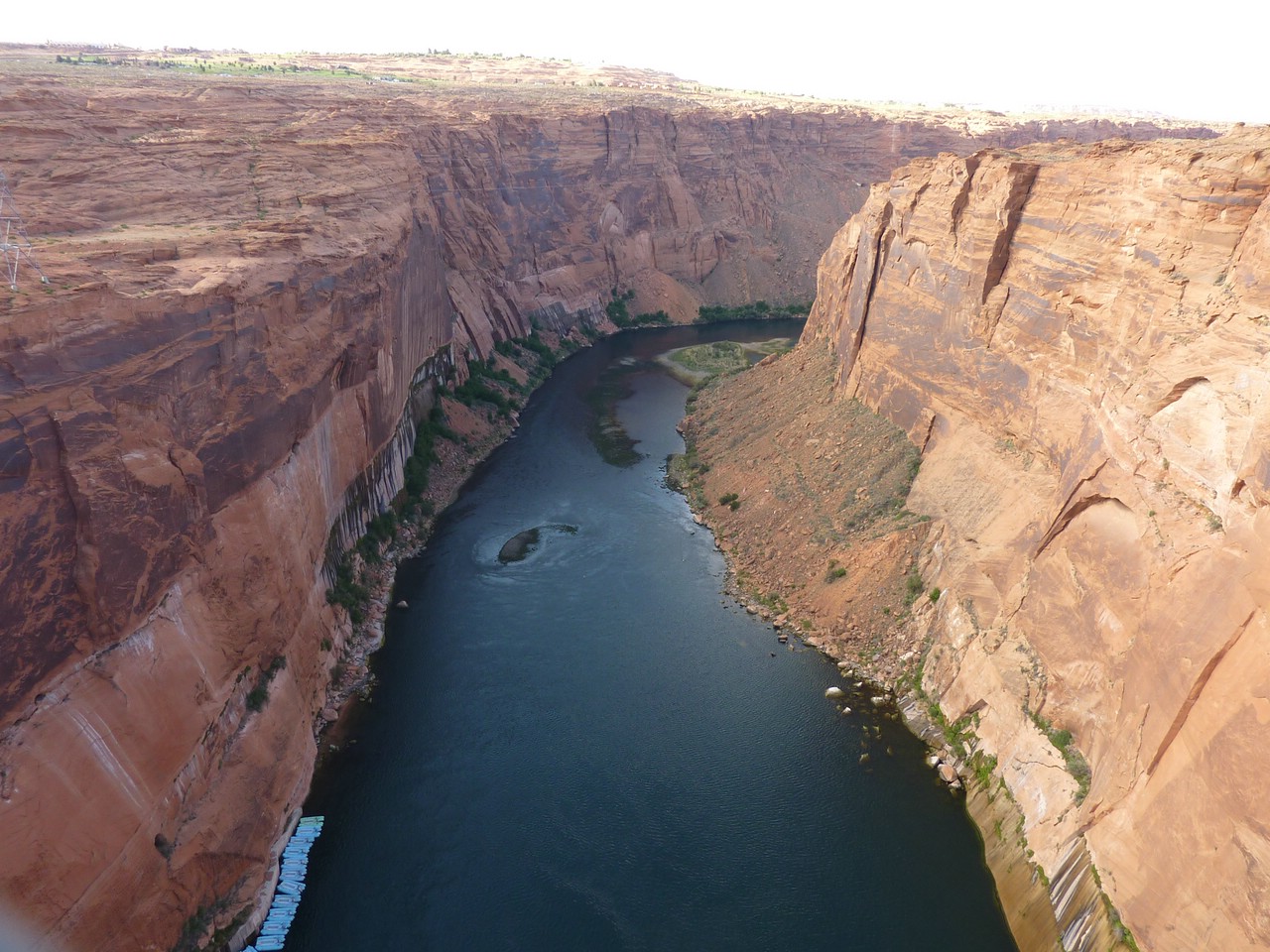 После ночёвки в городке Пэйдж (Аризона) мы выехали в сторону Юты. Попрощались с рекой Колорадо на плотине Глен-Каньон, высотой 178 м - второй по величине на этой реке (после плотины Гувера, которая на 50 метров выше). Благодаря этой плотине, образовался бассейн, который назвали по имени исследователя Джона Пауэлла. Этот однорукий ветеран со своей командой в 1869 году на трёх лодках исследовал реку. Вид с этой плотины открывается потрясающий - тут действительно находятся жемчужины коллекции обоев для рабочего стола компьютера.