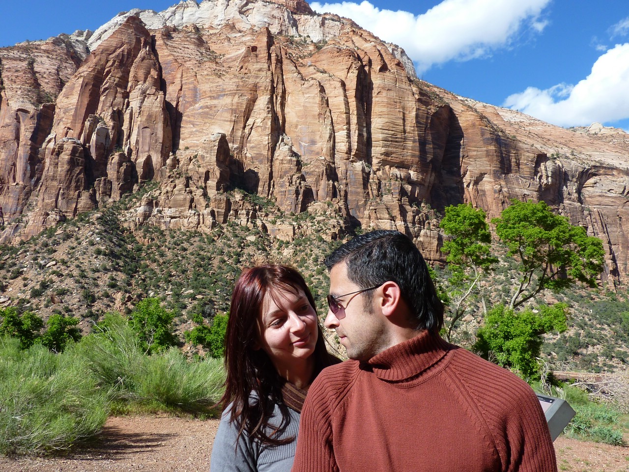 На маршруте у нас ещё несколько национальных парков, пора ехать дальше. Всего пару часов мы спускались по извилистой горной дороге до следующего Каньона – «Зайон» (Zion). Да, он назван в честь Земли Обетованной – своего рода «рай на земле». Что уж говорить о природе – речка, красивые горы, красные скалы, великолепная природа. Всё складывалось в завораживающий пейзаж, наподобие тех, что смотрят на нас с постеров, паззлов и роликов на канале Discovery. Даже у фотографа-новичка тут получаются шедевры. Ещё одной достопримечательностью этого места является туннель протяжённостью около 2 километров, пробитый в сплошной скале. Трудно представить, что сделан он был ещё в далёком 1930 году, чудо инженерной мысли того времени. Правда туннель не был рассчитан на большие машины и тем более автобусы. Поэтому, пропускают по очереди: то в одну сторону ряд машин, то в другую. Сравнивать Гранд-Каньон, Брайс-Каньон и Зайон не корректно – каждый из них имеет разное происхождение, каждый из них по-своему уникален и по-своему красив. У нас в группе были туристы, которым больше всех понравился Гранд-Каньон, но большинство (включая нас) всё же склонилось в пользу Брайс-Каньона. По крайней мере из того, что удалось увидеть своими глазами. Что тут говорить, национальные парки штата Юта по праву являются жемчужиной и гордостью Америки и мы получили огромное удовольствие от увиденного!