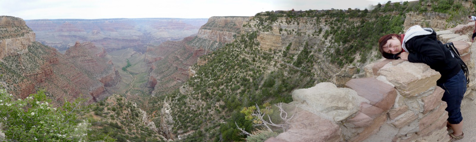 И вот, наконец, подъезжаем к нему. Выйдя из автобуса, поспешили на край этого чуда природы. Каньон просто огромен! Слово "огромен" тут даже не подходит, тут надо придумать какое-то новое слово для объяснения таких вот размеров! Длина почти 450 км, ширина местами доходит до 30 км, глубина до 1600 м. Если где-то и есть край света, то мы сейчас на этом краю стоим. Из-за огромных размеров фотографировали в основном панорамные снимки – получалось очень неплохо, но вживую увидеть – совсем другое дело.