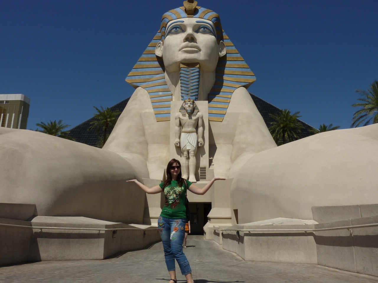 гостиницы Лас-Вегаса. Гостиница «Luxor», выполненная в виде 110-метровой египетской пирамиды из чёрного стекла, предлагает своим клиентам более 4400 номеров, декорированных по египетским мотивам, 5 бассейнов, египетский музей и точную копию гробницы Тутанхамона.  Вход в гостиницу охраняет сфинкс. Каждый вечер из верхушки пирамиды бьёт луч света – это самый большой в мире прожектор, луч видно даже из космоса.