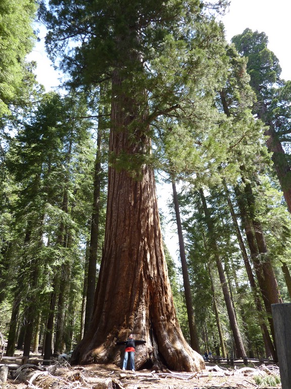 красочные, театральные Альпийские декорации. Сразу по прибытию в парк, мы  прогулялись по роще «Марипоса», известной своими гигантскими секвойями. Эти деревья одни из самых высоких и старых на земле. Высота некоторых превышает 100 м., а диаметр – 10 м. Сквозь такие стволы может свободно проехать автобус. Этих деревьев мы увидели несколько десятков, но и то впечатлений нам хватило. Сосны казались кустарниками рядом с секвойями, возраст которых превышал 3000 лет. На фото слева присутствует Оля. :)