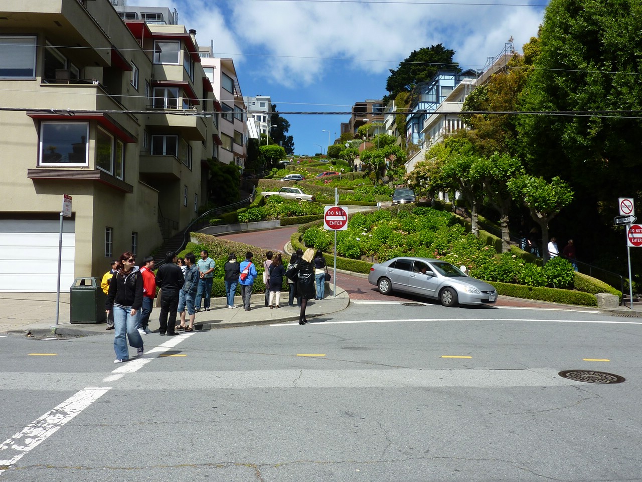 Это потрясающей красоты город, раскинувшийся среди многочисленных холмов. Недаром его называют самым европейским городом США: эти домики в испанском стиле, украшают идущие то вверх то вниз улицы. Иногда они идут под углом в 45 градусов, можете представить себе парковочку вверх по движению. Улицы извиваются не только в вертикальной плоскости – к заливу Сан-Франциско мы спустились по самой извилистой улице мира – Ломбард стрит. Посреди залива виден знаменитый остров-тюрьма Алькатрас, где сидел знаменитый Аль Капоне. Интересно, что на острове,